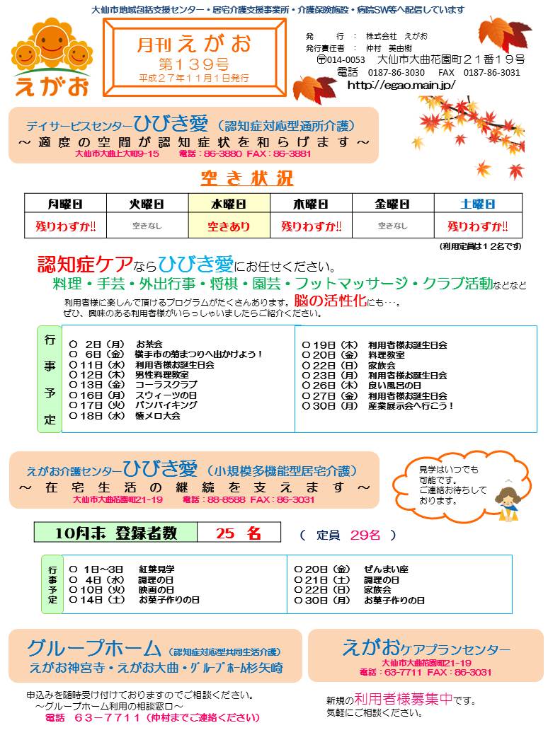 2015年11月10日 / 最終更新日時 : 2015年12月7日 egao-Administrator 201511gekkanegao コメントを残す コメントをキャンセルメールアドレスが公開されることはありません。 ※ が付いている欄は必須項目ですコメント ※ 名前 ※ メール ※ サイト 次回のコメントで使用するためブラウザーに自分の名前、メールアドレス、サイトを保存する。 Δ このサイトはスパムを低減するために Akismet を使っています。コメントデータの処理方法の詳細はこちらをご覧ください。